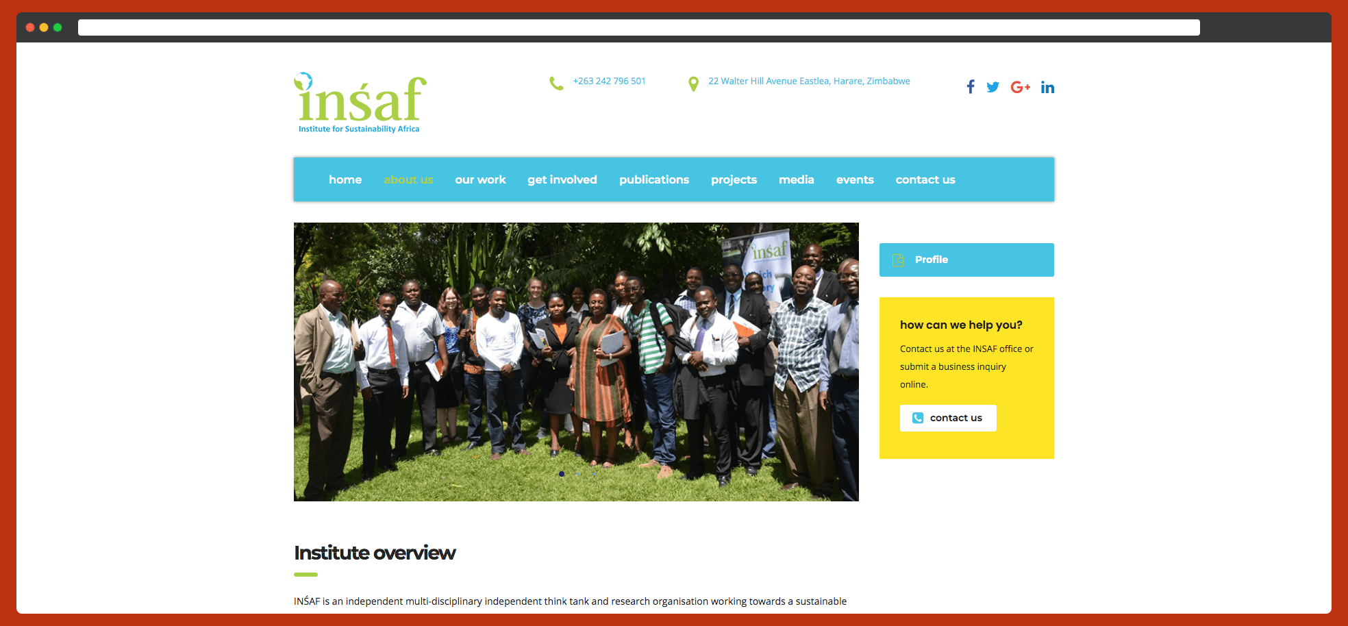 The Insaf Official Website developed by Design@7 Link: http://instforsustainafrica.org/