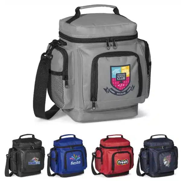 - Front zippered pocket which opens very wide. Dual side zippered pockets with mesh slip section.