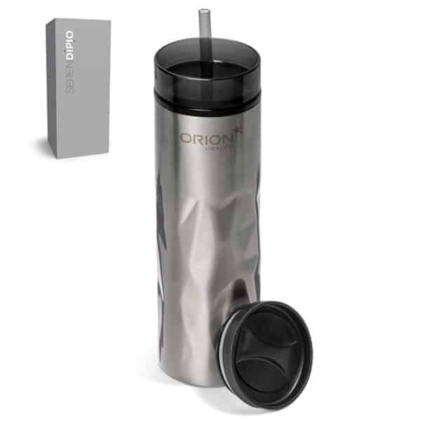 This modern, stylish upmarket design is a must-have. Exceptional quality is available in stunning gold or silver. Great travel mug for any executive.